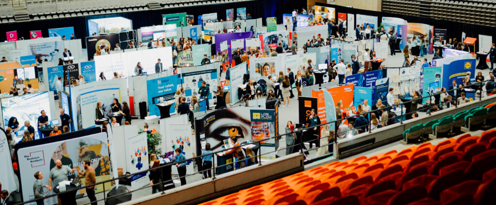 Uit de verschillende bevragingen die wij opstellen, blijkt dat 80% van onze studenten een jobbeurs ziet als de prioritaire manier om aan een job te geraken. Een niet te missen evenement dus.