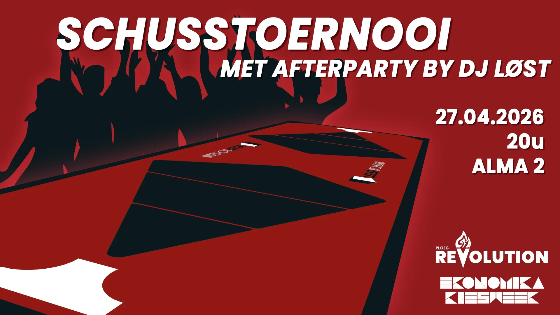 Laat die vingers maar alvast opwarmen, want op maandag 27 april toveren we Alma 2 om tot de ultieme arena voor het enige echte Revolution Leberschuss Toernooi! 🏆🍻
